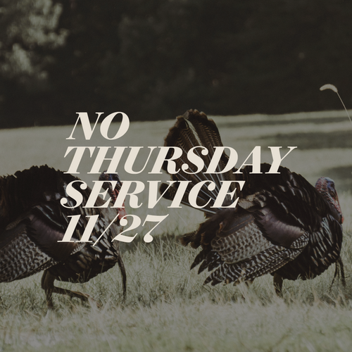 We'll be back to our regular routine in a few weeks. If you usually join us on Thursday evenings, be sure to come on out on a Sunday at either campus: